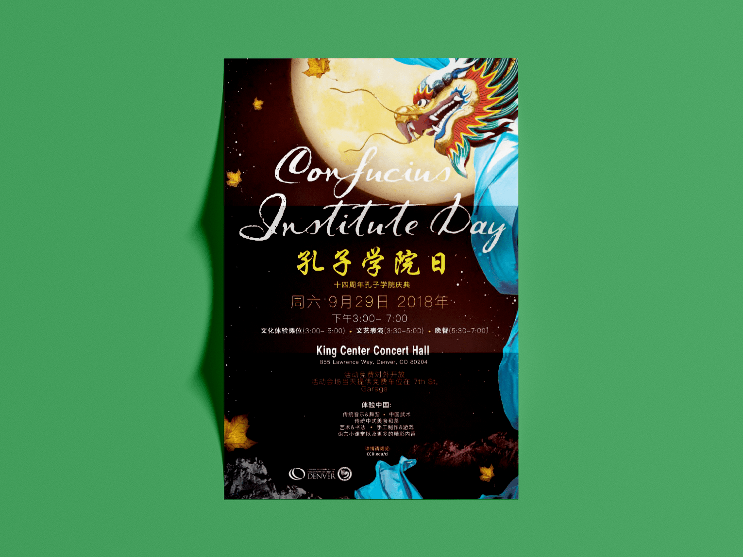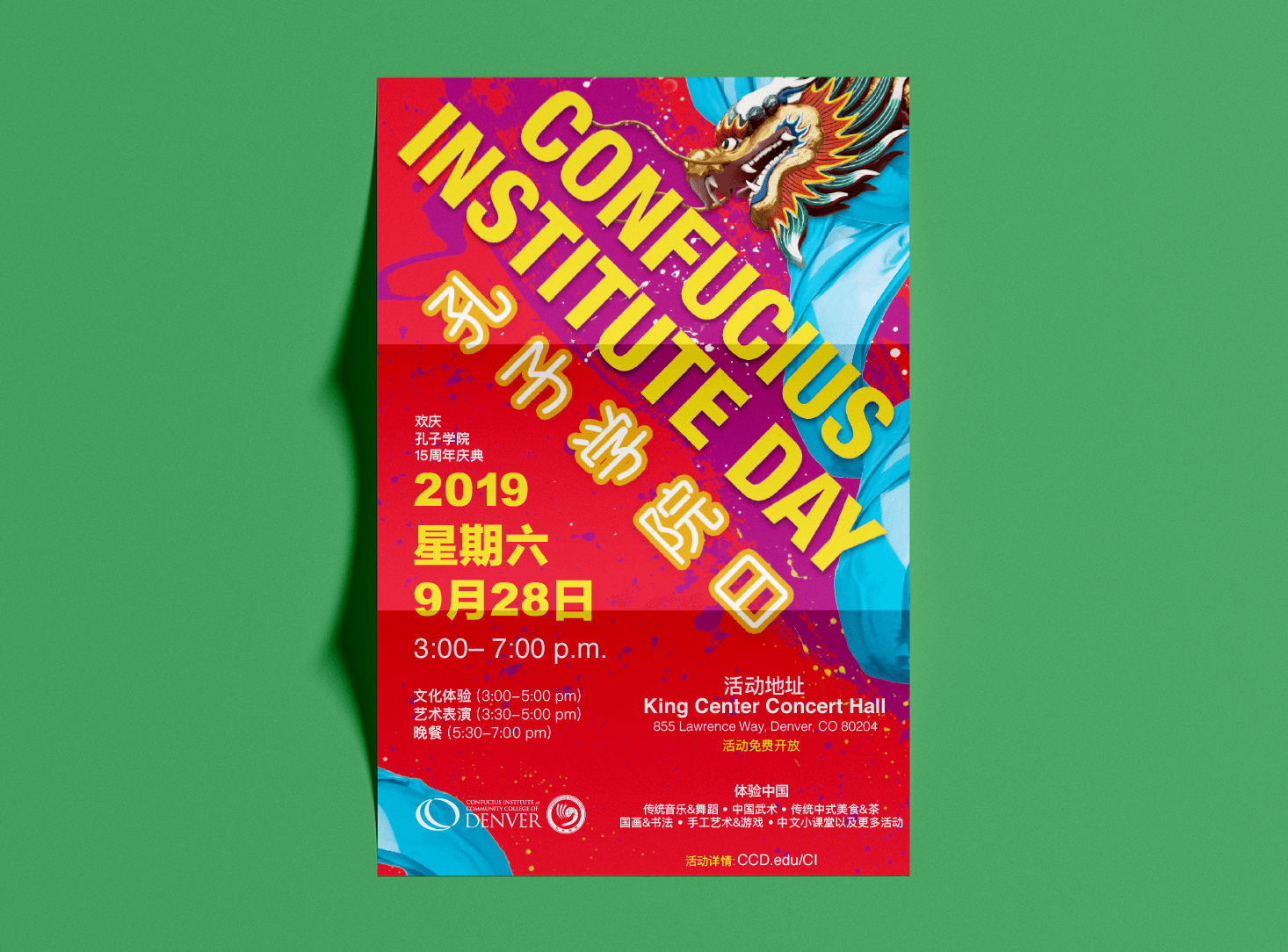 CICCD is the abbreviation of the Confucius Institute at Community College of Denver. As the only Confucius Institute in the world established by a community college, it’s core value and mission were to promote Chinese culture, language studies, testing, scholarships, and to assist related affairs in American universities.
