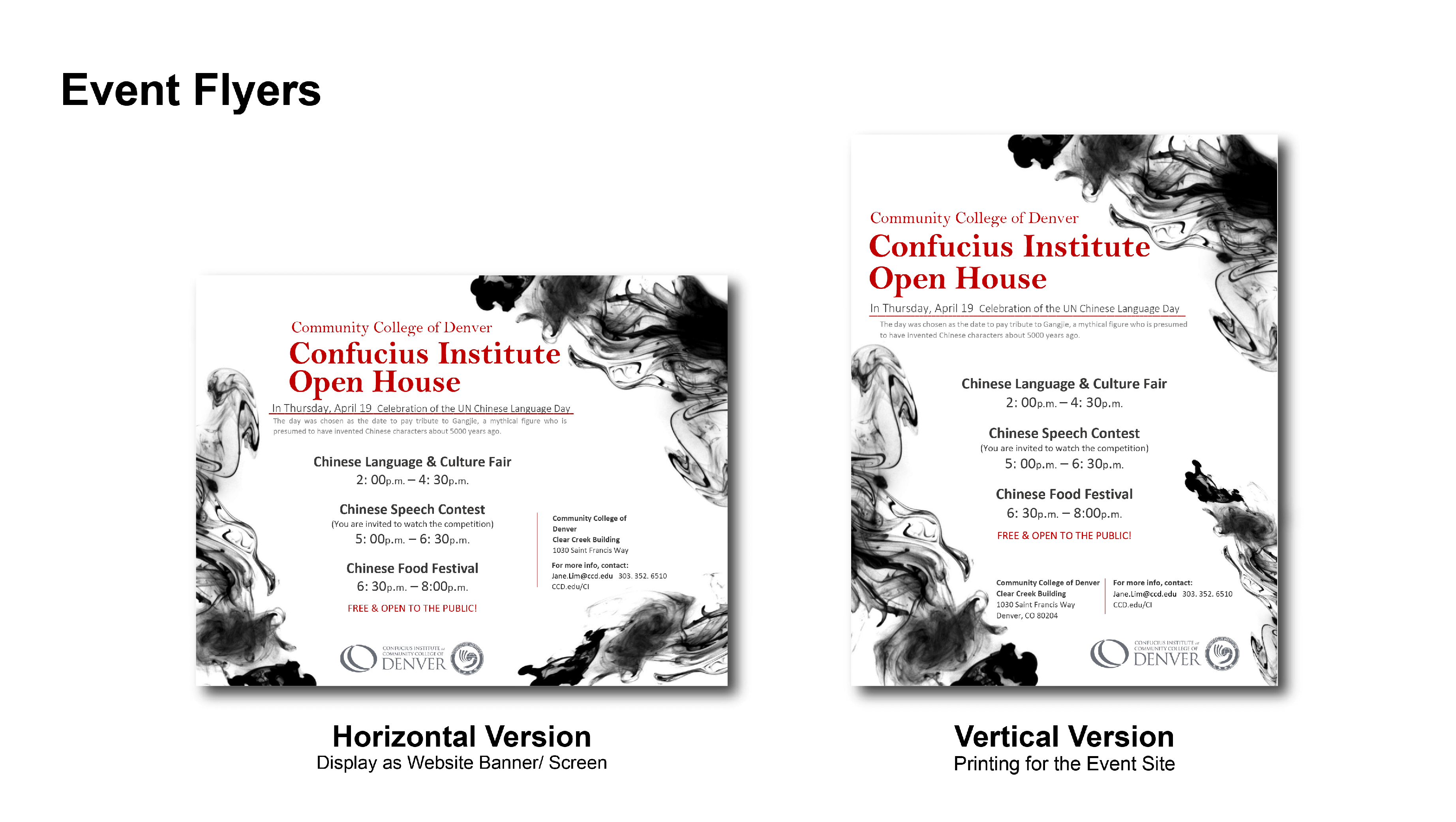 Because this department was a subordinate institution of public universities, and had cooperative partnership with Chinese universities, it was a representative of multiculturalism. And the institute already has branded guideline, my designs must meet the brand requirements, including the use of Logo and colors. Another point was the events and courses needed to be presented as different topics every year, so I made the production of these projects according to the background, goals, and contents of events or courses every year.